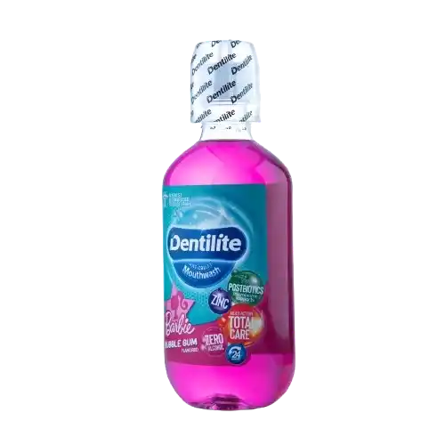دهانشویه کامل دنتیلایت به سبب وجود پستبیوتیک در فرمولاسیون ویژه خود، منجر به تعادل میکروبیومهای دهانی و جلوگیری از رشد باکتریهای مضر میشود. این محصول با سدیم فلوراید و زایلیتول غنی شده است که به تقویت مینای دندان و پیشگیری از پوسیدگی آن کمک میکند. روی (زینک) موجود در این دهانشویه نه تنها در بهبود سلامت لثه موثر است، بلکه با ارائه خواص آنتیباکتریال، باعث پیشگیری از پوسیدگی دندان و کاهش تشکیل پلاک میشود. همچنین وجود عصاره مریم گلی در فرمولاسیون این محصول، به حفظ سلامت بیشتر لثه کمک میکند. این محصول در پنج طعم لیمو، موهیتو، آلبالو، بلوبری و باربی، تولید شده است که محصول فعلی، طعم باربی این دهانشویه میباشد.