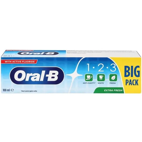 خمیر دندان Oral-B Extra Fresh 1.2.3 محصولی مناسب برای استفاده روزانه است که با طعم خنک خود، دهان را تازه و تمیز نگه میدارد. این خمیر دندان در حجم ۱۰۰ میلیلیتری عرضه میشود و انتخابی کاربردی برای مراقبت روزانه از دندانها به شمار میرود.