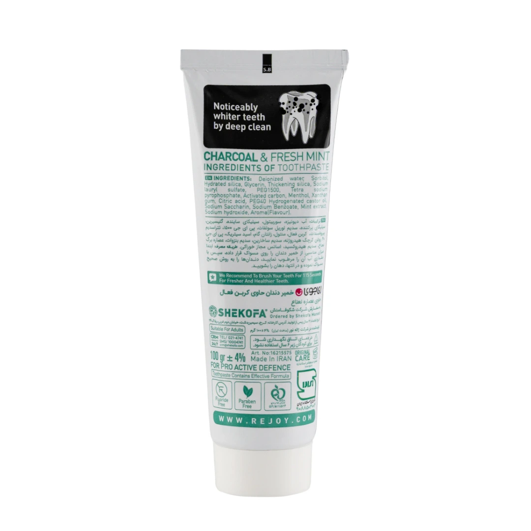 خمیردندان سفیدکنندهی ریجوی (Rejoy) با بهرهگیری از زغال فعال، دندانها را بهصورت عمیق تمیز میکند و به مرور باعث سفید شدن ملایم آنها میشود، بدون آنکه به مینای دندان آسیبی بزند.