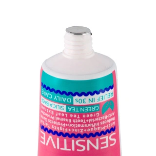 این محصول علاوهبر کاهش حساسیت، خاصیت ضدباکتریایی، ضد التهاب، و محافظت از مینای دندان را نیز داراست و از این رو برای استفاده روزانه توصیه میشود. همچنین پایه سیلیکا و عصاره چای سبز در آن به حذف موثر پلاکهای سطح دندان کمک میکنند، در حالی که طراوت و تازگی دهان را نیز حفظ مینمایند.