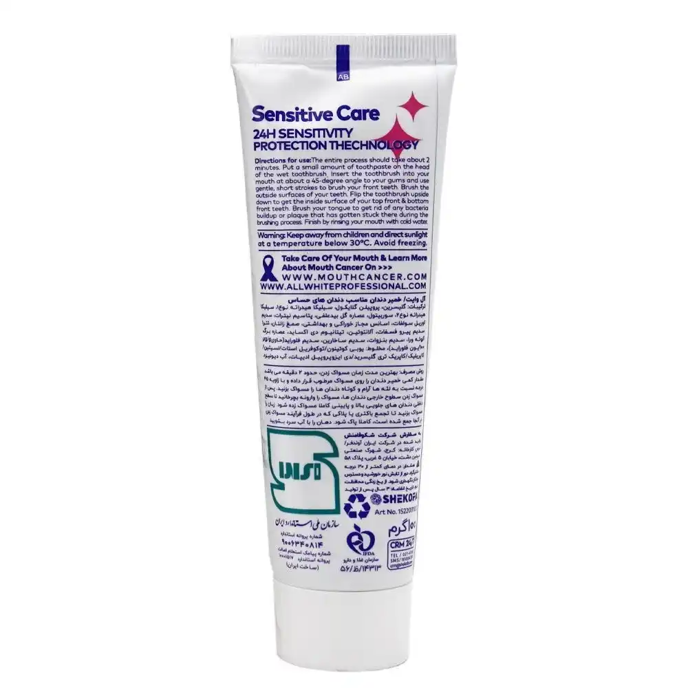 خمیردندان آل وایت مدل Sensitive Care | مناسب دندانهای حساس | ۱۰۰ گرم