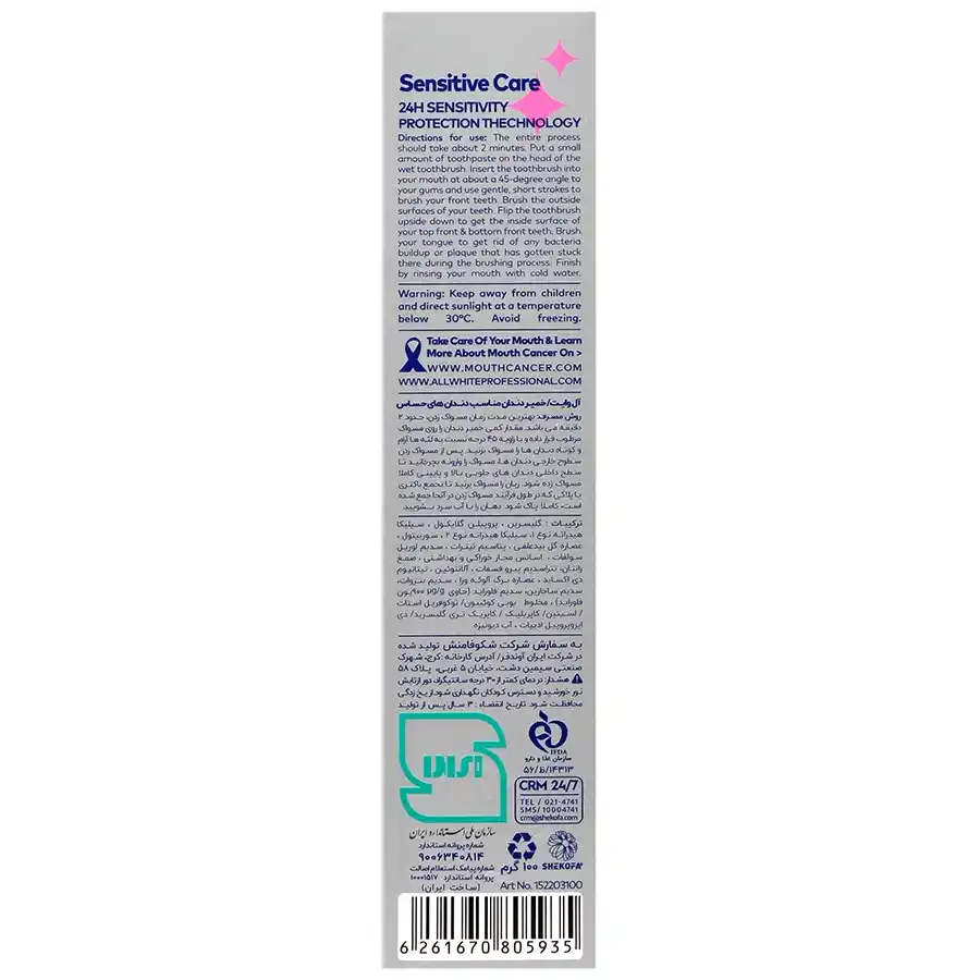 خرید خمیردندان آل وایت Sensitive Care از مسواکالا