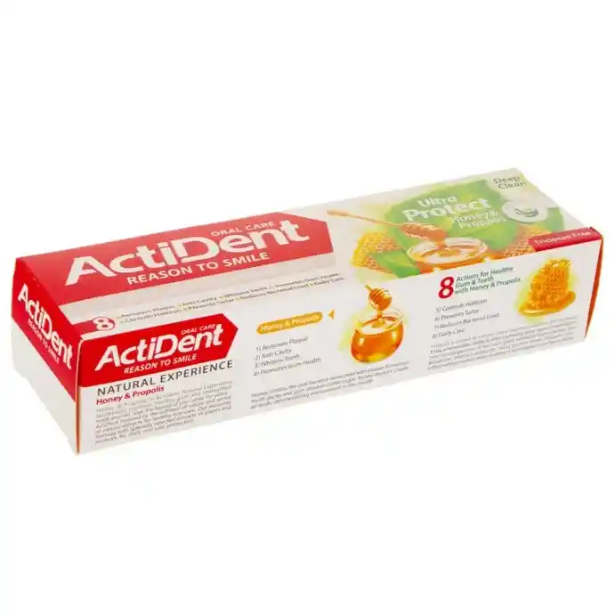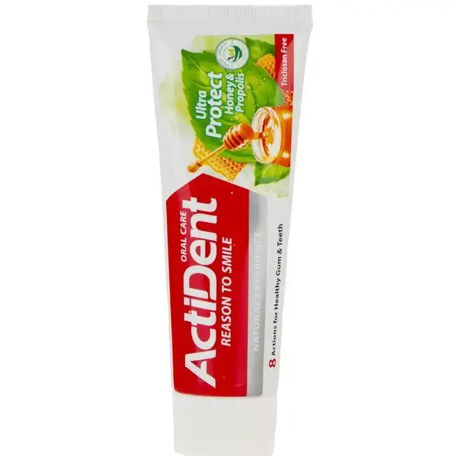 خمیردندان اکتیدنت مدل اولترا پروتکت ترکیبی از تجربه سنتی و دانش مدرن در بهداشت دهان و دندان است. این محصول با بهرهگیری از خواص طبیعی عسل و پروپولیس، جهت پاکسازی، تقویت مینای دندان و ارتقاء سلامت لثه طراحی شده است. فرمولاسیون این خمیردندان با هدف کنترل پلاکهای دندانی، جلوگیری از پوسیدگی، حفظ سفیدی طبیعی دندانها و کاهش بار باکتریایی در دهان توسعه یافته است.