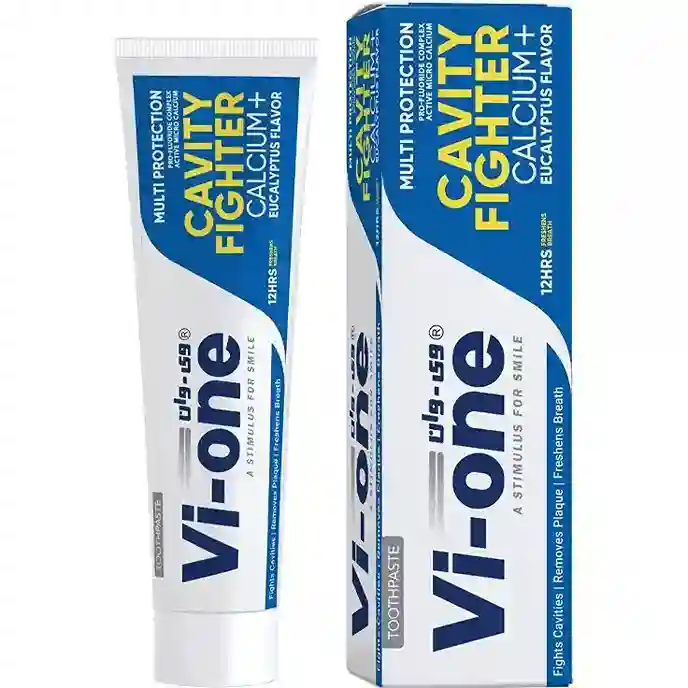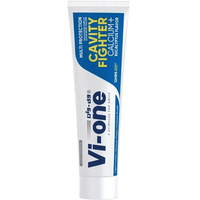 خمیردندان وی وان مدل Cavity Fighter یک محصول چند منظوره برای مراقبت کامل از دهان و دندان است. این خمیردندان با ترکیبی از فلوراید، کلسیم و زینک فرموله شده تا نیازهای اصلی بهداشت دهان را برطرف کند. وجود فلوراید در آن خاصیت ضد پوسیدگی داشته و به تقویت و استحکام مینای دندان کمک مینماید.