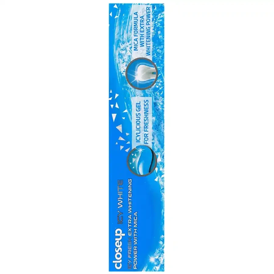 خمیردندان کلوز آپ مدل آیسی وایت ویـنتر بلاست با ترکیب فلوراید و مواد سفیدکننده، برای کاهش لکههای رنگی دندان و پیشگیری از پوسیدگی طراحی شده است. طعم خنک نعناع در این خمیر دندان، احساسی از تمیزی و خنکی طولانیمدت به دهان میدهد.