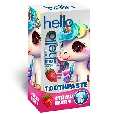 خرید خمیردندان Hello Kids طرح یونیکورن توت فرنگی از مسواکالا