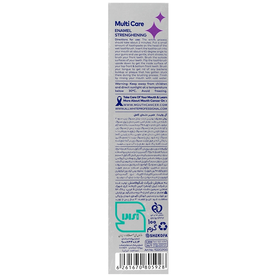 خمیردندان آل وایت مدل Multi Care | تقویت کننده مینای دندان | ۱۰۰ گرم