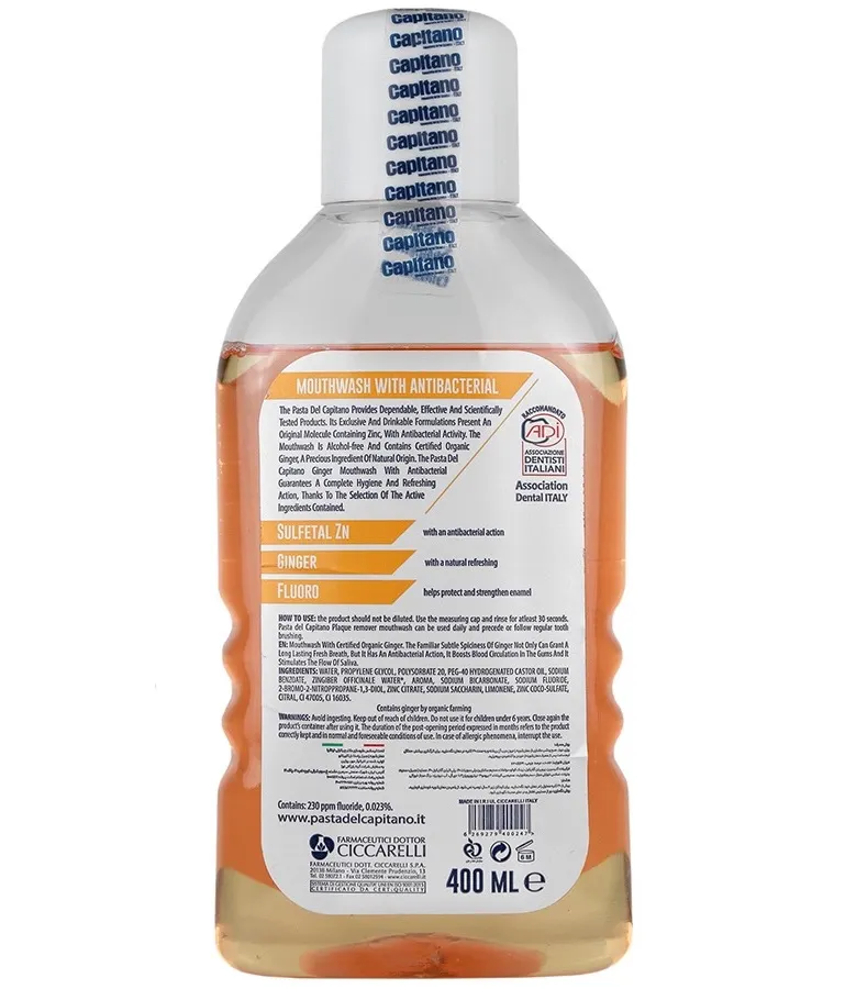 دهانشویه زنجبیل فاقد الکل پاستا دل کاپیتانو ۴۰۰ میلی لیتر
