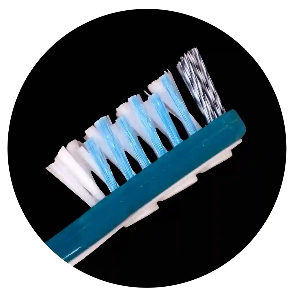 الیاف این مسواک با گذر زمان و بر اثر استفاده تغییر رنگ میدهند. این تغییر رنگ بهمنزلهی یک شاخص بصری برای تعیین زمان مناسب تعویض مسواک عمل میکند و از تداوم استفادهی غیربهداشتی جلوگیری مینماید.