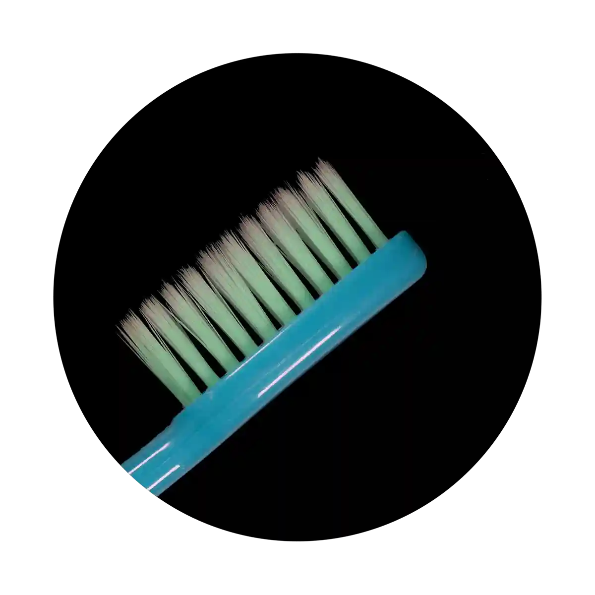 - الیاف مخروطی و نرم جهت دسترسی به فضاهای بین دندانی: طراحی این نوع الیاف باعث افزایش دسترسی به فضاهای بین دندانی و شیار لثهها میشود. این ویژگی به حذف بهتر پلاکهای دندانی در نقاطی کمک میکند که مسواکهای معمولی توانایی نفوذ به آنها را ندارند. این مسواک دارای برس نرم است که کاملا مناسب استفاده روزانه میباشد.