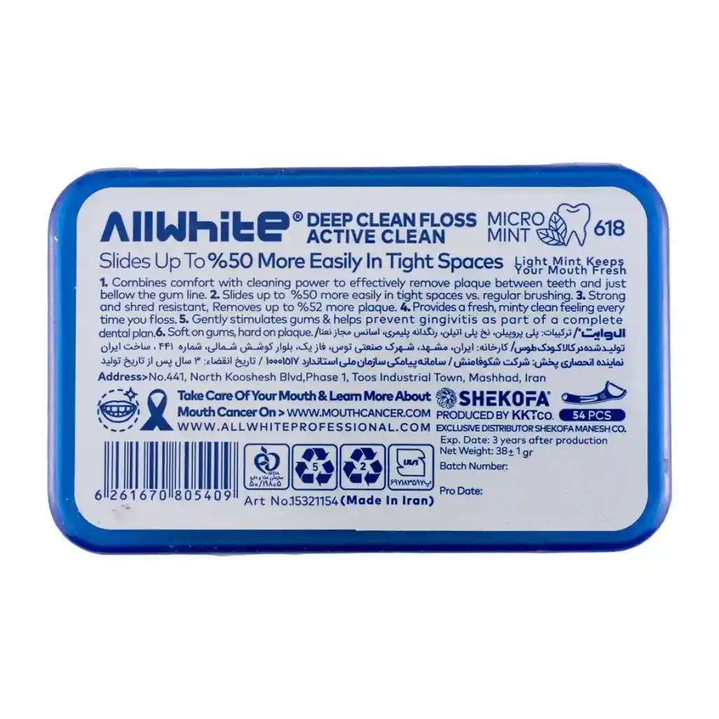 مزایای بهداشتی نخ دندان کمانی نعنایی AllWhite