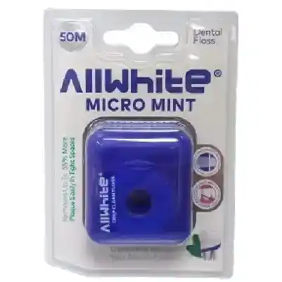 نخ دندان آل وایت میکرو مینت (Allwhite Micro Mint) با طعم ملایم نعنا، نخ دندانی با قابلیت پاکسازی 55% پلاک بیشتر است. این نخ دندان مقاوم در برابر پارگی و مناسب برای فضاهای تنگ میباشد و پلاکهای دندان را بدون آسیب به لثه از بین میبرد.