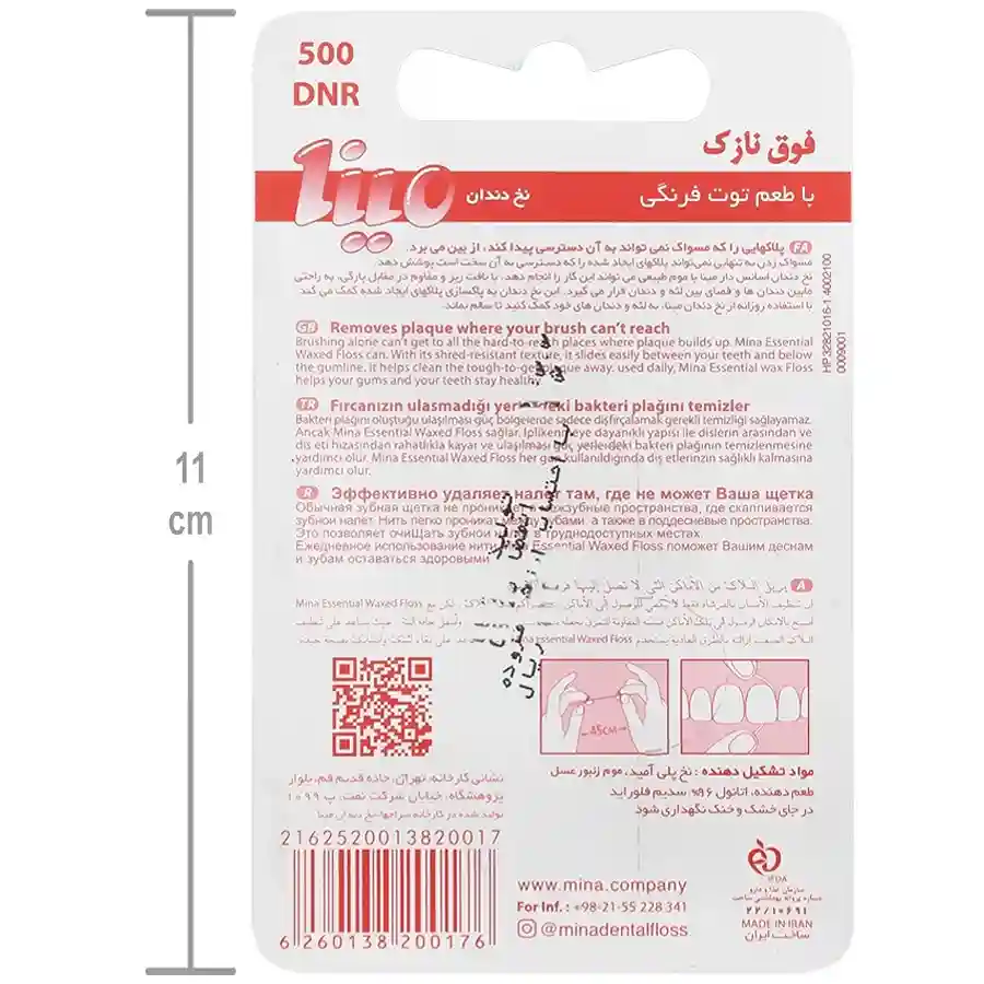 حفظ سلامت دهان و دندان صرفاً با مسواک زدن حاصل نمی‌شود. بسیاری از نواحی میان دندانی و زیر لثه‌ها از دسترس مسواک خارج‌اند و پلاک‌های میکروبی می‌توانند در این نواحی تجمع یابند. نخ دندان توت‌فرنگی مینا با طراحی فوق‌نازک، روکش موم زنبورعسل و ترکیب مؤثر فلوراید، ابزاری دقیق و مؤثر برای پاکسازی این نواحی حساس است. این نخ دندان، با بهره‌گیری از نخ پلی‌آمید مقاوم در برابر نخ‌کش شدن، ضمن حفظ طراوت دهان به کاهش خطر پوسیدگی دندان و بیماری‌های لثه کمک می‌کند.عطر طبیعی توت‌ فرنگی حاصل از اسانس‌های باکیفیت، باعث می‌شود حس تازگی و طراوت، پس از مصرف در مجرای تنفسی باقی بماند. این محصول نه‌تنها به عنوان یک نخ دندان قرقره‌ای کاربردی شناخته می‌شود، بلکه با انتخابی دقیق در طعم‌دهنده‌ها، تجربه خوشایندی از بهداشت دهان ایجاد می‌کند.