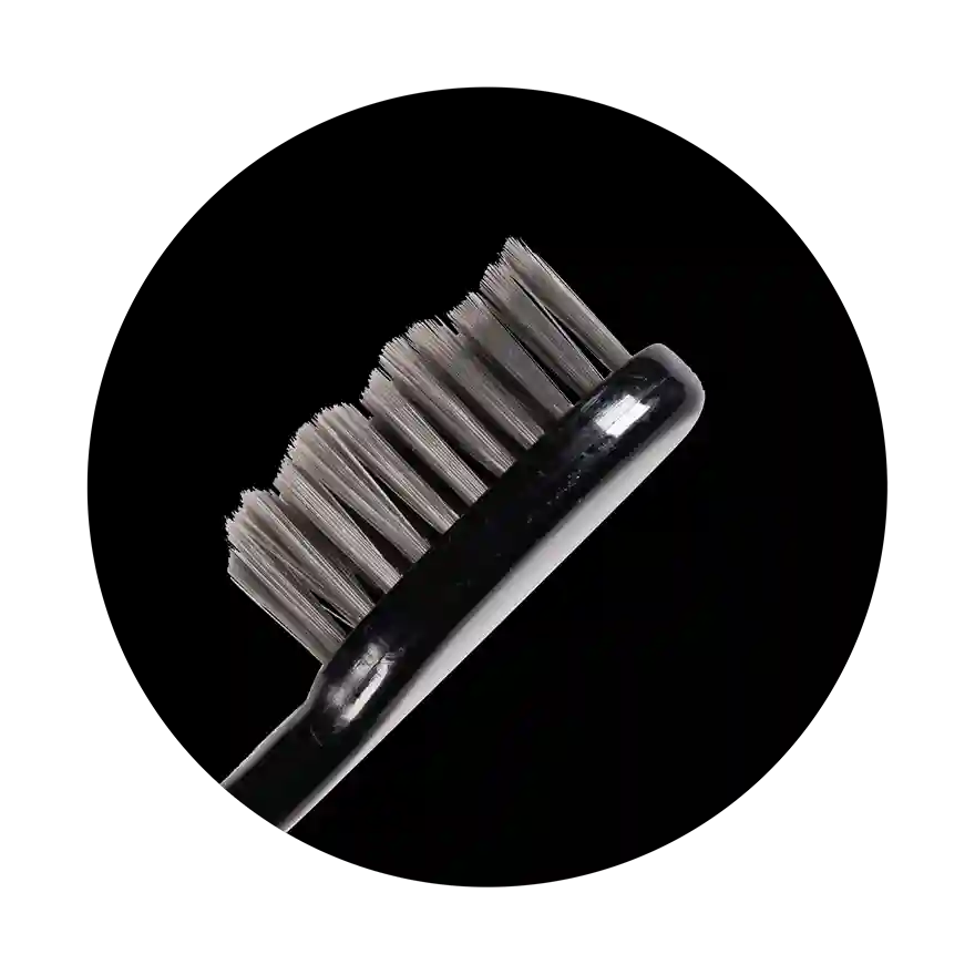 - الیاف دارای زغال فعال با خاصیت آنتیباکتریال الیاف این مسواک با بهرهگیری از کربن فعال تولید شدهاند؛ کربن با فرآیند سوزاندن کنترلشده مواد کربنی در غیاب اکسیژن بهدست میآید و خاصیت جذب سطحی بالایی دارد. این ویژگی باعث حذف پلاکهای دندانی و باکتریها از سطوح دندان شده و به سفیدتر شدن طبیعی دندانها کمک میکند (بهویژه در مقابله با لکههای ناشی از مصرف چای، قهوه یا مواد غذایی رنگی)