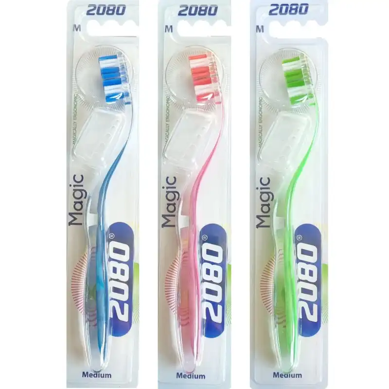 لبخندی درخشان و دندانهایی تمیز با کمترین آسیب به لثه با مسواک مجیک 2080. برس متوسط و طراحی پیشرفته در کنار هم یک تجربه متفاوت از بهداشت دهان را برایتان رقم میزند.