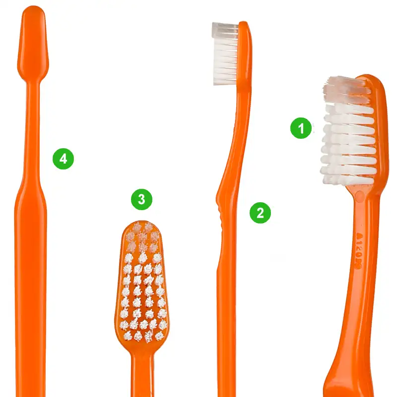 - طراحی سر مثلثی و فیلامنتهای خاص این طراحی موجب دسترسی بهتر به فواصل بین دندانی و نواحی دور از دسترس میشود. فیلامنتهای نایلون 6.12 با نوک گرد (End Rounded) ضمن حفظ سلامتی لثه، از التهاب و آسیب جلوگیری میکنند و به پاکسازی عمیق سطوح دندانی کمک مینمایند.