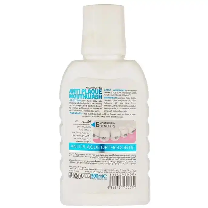 - مناسب برای افرادی که ارتودنسی دارند این دهانشویه بهطور خاص برای کسانی است که از ارتودنسی استفاده میکنند، طراحی شده است. فرمولاسیون آن به کنترل پلاک و کاهش مشکلات لثه در افراد دارای ارتودنسی کمک میکند و از تجمع میکروبها و پلاکها در اطراف براکتها و سیمهای ارتودنسی جلوگیری میکند.