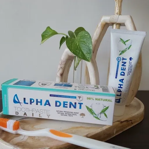 انتخاب خمیردندان مناسب بخشی اساسی از روتین بهداشت دهان و دندان است. خمیردندان آلفادنت مدل شاینا، با ترکیبات گیاهی، اثرات ضد پوسیدگی، ضد پلاک و جرم و قدرت سفید کنندگی طبیعی، محصولی است که می‌تواند نیازهای روزانه شما را پاسخ دهد. این خمیردندان که ساخت ایران است  و دارای استانداردهای بین‌المللی است، به شما کمک می‌کند لبخندی سالم‌تر و ماندگارتر داشته باشید.