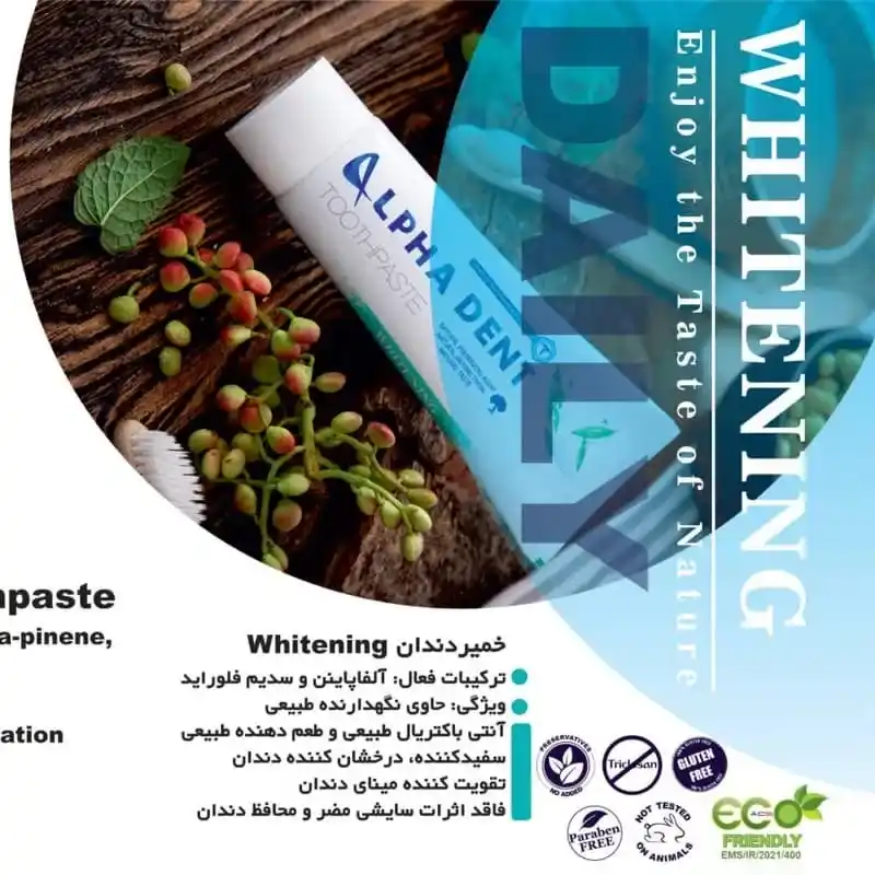 • خمیردندان گیاهی الفادنت با عصاره‌های طبیعی: خمیردندان گیاهی الفادنت با ترکیبات گیاهی و طبیعی بدون استفاده از مواد مضر طراحی شده تا مراقبتی ملایم و در عین حال موثر برای دهان و دندان فراهم کند.