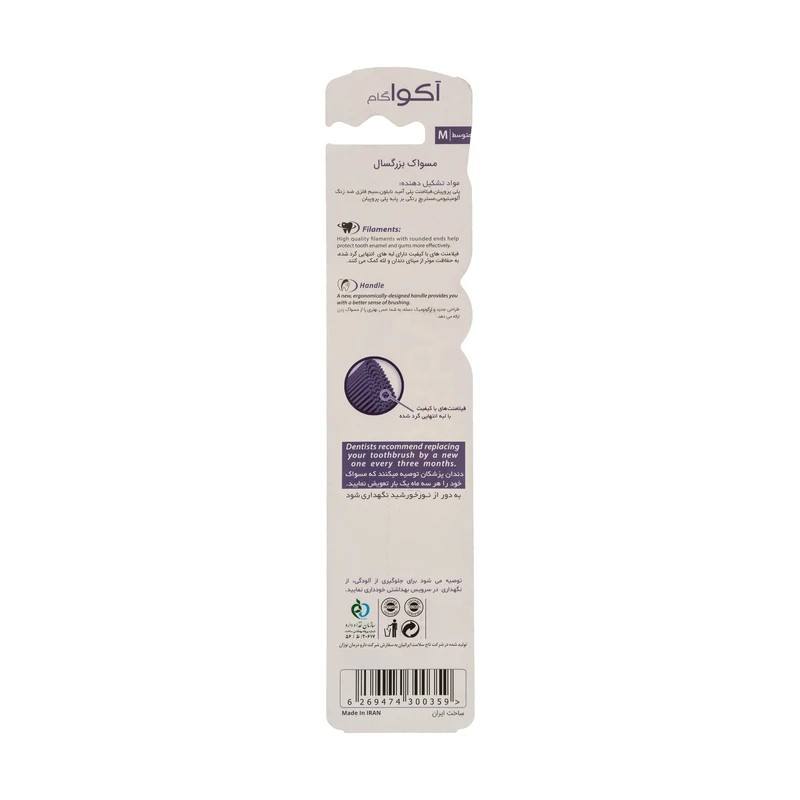 مسواک آکواگام مدل Extra Clean| برس متوسط| محافظ مینای دندان و لثه