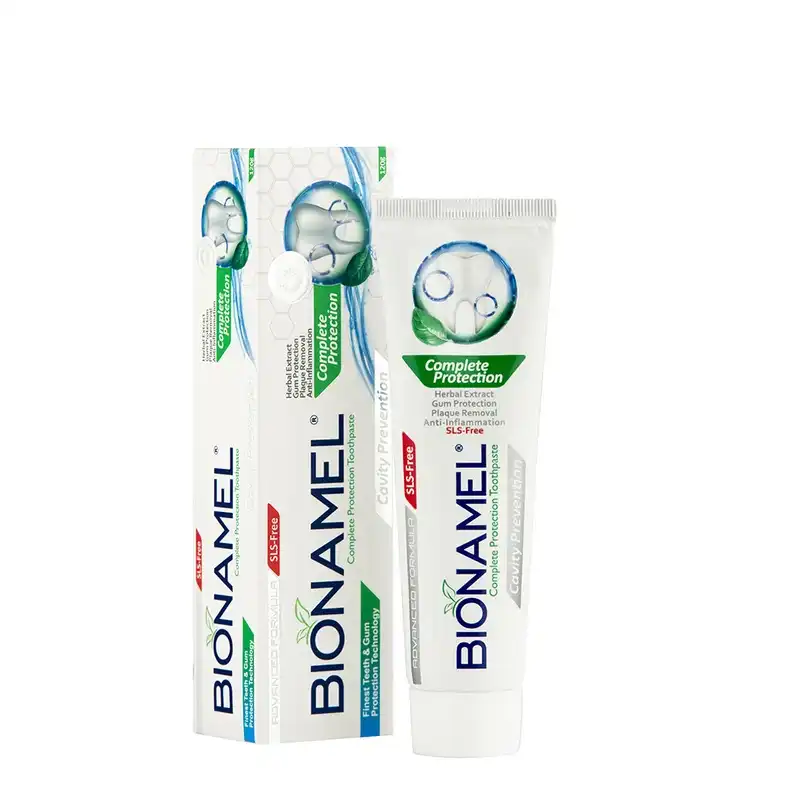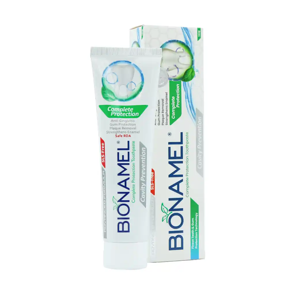 خمیردندان محافظت کامل BIONAMEL با فرمول پیشرفتهاش، دندانهای شما را از پوسیدگی و آسیب محافظت کرده و لثهها را تقویت میکند و همچنین از حساسیت دندانها جلوگیری میکند.