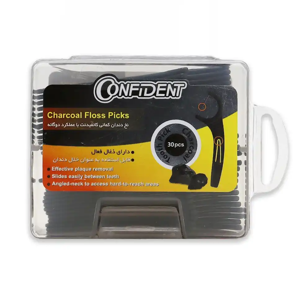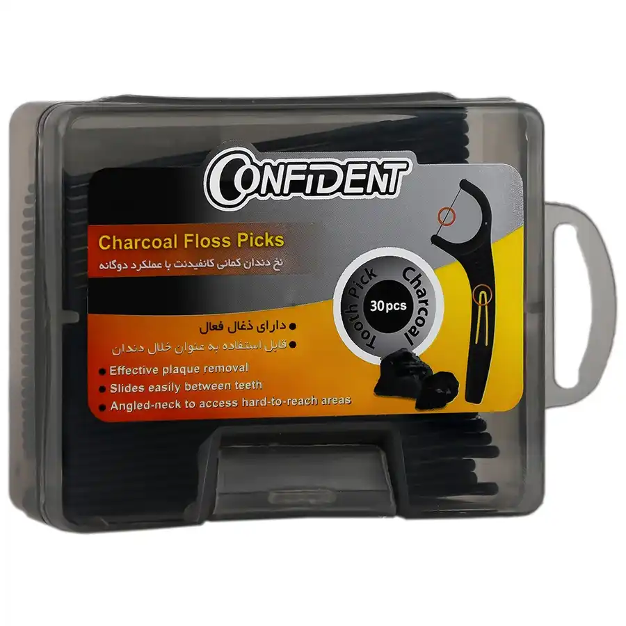 نخ دندان کمانی زغالی کانفیدنت مدل Charcoal – بسته ۳۰ عددی