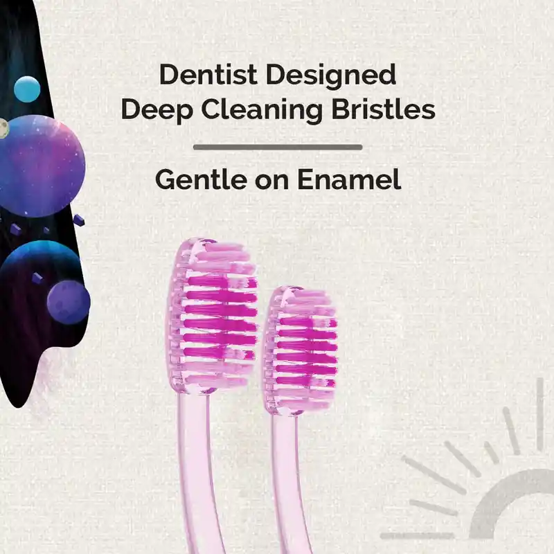 با بررسی مشخصات فنی درج شده بر روی بسته بندی و آنالیز ساختار محصول، ویژگی های عملکردی زیر قابل استناد است:- تکنولوژی الیاف فوق باریک (Ultra-Slim Bristles): وجه تمایز اصلی این مسواک، استفاده از نسل جدید فیلامنت های بسیار نازک با ضخامت نوک کمتر از ۰.۰۱ میلیمتر است (۲۰ برابر نازکتر از الیاف معمولی). این ساختار ظریف باعث می شود تا الیاف بتوانند به کوچک ترین فضاهای بین دندانی نفوذ کرده و پلاک های میکروبی پنهان را که عامل اصلی پوسیدگی های بین دندانی هستند، پاکسازی نمایند.