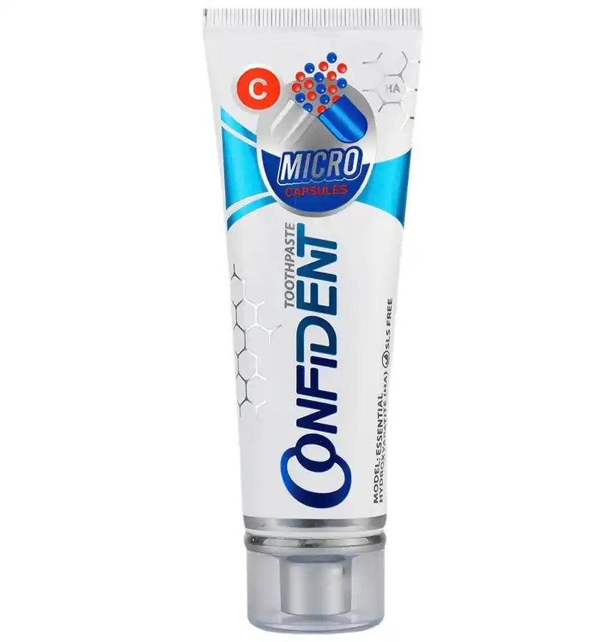 - فاقد SLS و مناسب برای دندانهای حساس: حذف سدیم لوریل سولفات (SLS) باعث میشود این خمیردندان در تماس با لثه، تحریک یا سوزش ایجاد نکند و برای افرادی با دندانهای ترمیم شده یا حساس مناسب باشد. سدیم لوریل سولفات یا SLS، یک ماده شیمیایی پرکاربرد است که اغلب به عنوان "سولفات" شناخته میشود. این ماده در بسیاری از محصولات شوینده مانند شامپو، صابون و برخی خمیردندانها استفاده میشود. وظیفه اصلی SLS تولید کف زیاد و ایجاد حس تمیزی و کف فراوان است که به پخش شدن خمیردندان در دهان کمک میکند. دلیل حذف آن در محصولات حساس این است که اگرچه SLS یک پاک کننده مؤثر است، اما برای برخی افراد میتواند تحریک کننده باشد. در محصولات فاقد SLS (مانند خمیر دندان Confident Essential)، این ماده حذف شده است تا از بروز حساسیت، خشکی دهان، یا تحریک و التهاب در لثهها و مخاط دهان که در اثر تماس با این کف کننده قوی ایجاد میشوند، جلوگیری شود. به همین دلیل، خمیر دندان فاقد SLS برای لثه ها و دندان های حساس یا افرادی که دندان ترمیم شده (کامپوزیت/لمینت) دارند، مناسب تر است.