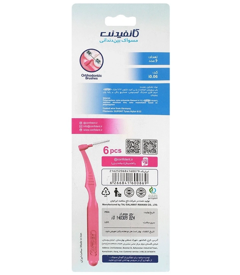 فروشگاه اینترنتی مسواکالا، مسواک بین دندانی کانفیدنت سایز ۰ (بسته ۶ عددی) را با تضمین اصالت و سلامت کالا عرضه می نماید. اگر دندانپزشک شما استفاده از سایز ۰.۴ میلی متر را برای بهداشت روزانه یا دوران ارتودنسی تان تجویز کرده است، این محصول انتخابی دقیق و علمی خواهد بود. بر اساس توصیه تولیدکننده، جهت جلوگیری از آلودگی و حفظ کارایی، پیشنهاد می شود هر دو هفته یکبار نسبت به جایگزینی مسواک اقدام نمایید.