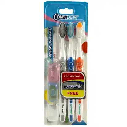 بسته ۳ عددی مسواک کانفیدنت مدل Promo-Polaris با برس نرم