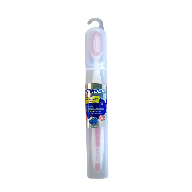 اگر اهل سفر هستید و نگران آلودگی مسواک در چمدان خود می باشید، مسواک مسافرتی کانفیدنت مدل Turbo Polaris با قاب محافظ اختصاصی و طراحی جمع و جور خود، بهداشتی ترین انتخاب برای شماست؛ این محصول با الیاف گرد شده (End-rounded) و برس متوسط، بدون ایجاد خراش روی مینای دندان، تمیزی عمیق و لبخندی درخشان را در هر مقصدی برایتان تضمین می کند.