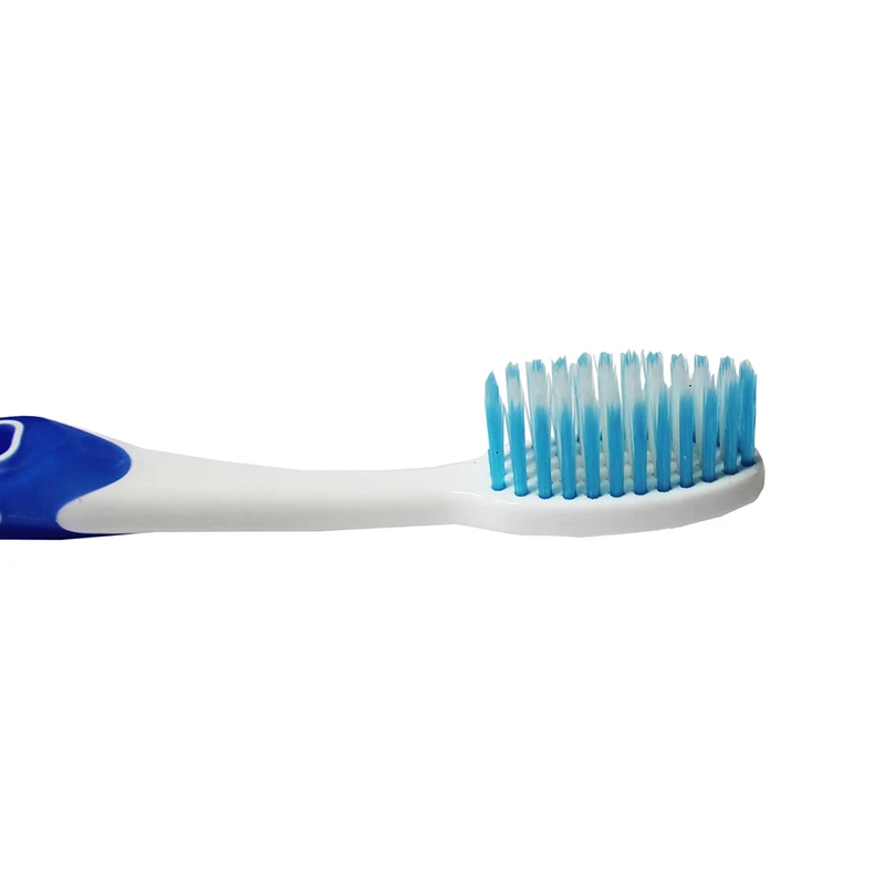 - تکنولوژی الیاف گرد شده (End-rounded Filaments): این مسواک دارای برس متوسط است که نوک الیاف آن طی فرآیندی دقیق، گرد (Round) شده اند. این ویژگی حیاتی باعث می شود تا در حین مسواک زدن، هیچ گونه ترومای فیزیکی یا خراش میکروسکوپی بر روی مینای دندان و بافت لثه ایجاد نشود.