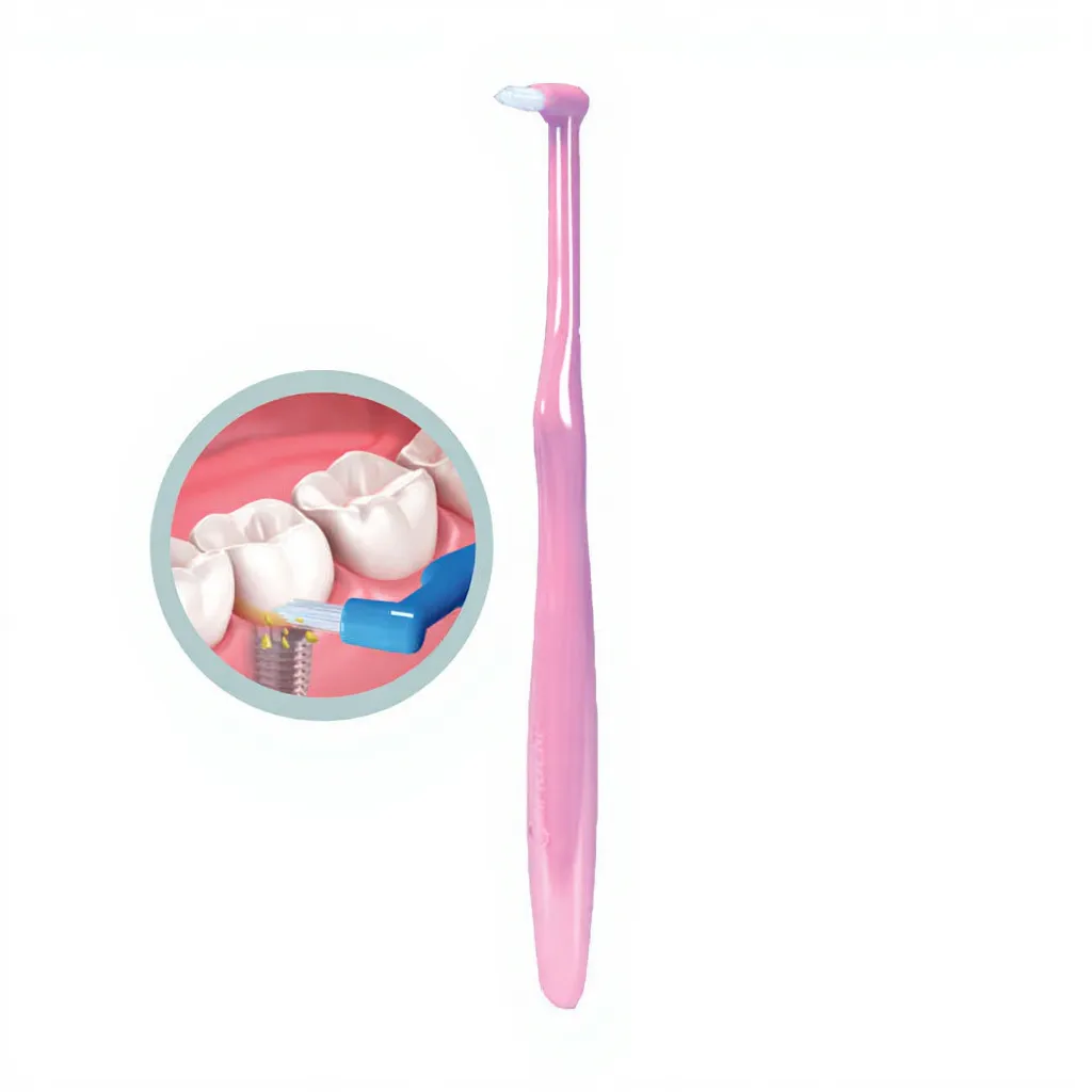 - ابزار ضروری برای نگهداری ایمپلنت و پروتز: بزرگترین چالش در نگهداری بلندمدت ایمپلنت های دندانی، تجمع پلاک باکتریایی در خط لثه و اطراف پایه ایمپلنت است. این مسواک حفظ سلامت لثه به طور خاص برای پاکسازی این نواحی حساس طراحی شده و نقش کلیدی در جلوگیری از التهاب لثه (ژنژیویت) و التهاب بافتهای اطراف ایمپلنت (پری-ایمپلنتیت) ایفا می کند.