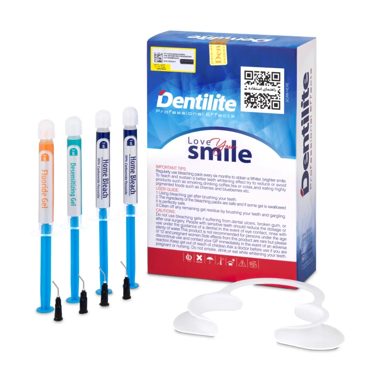 کیت بلیچینگ خانگی دنتیلایت با بهره‌گیری از مواد اولیه مرغوب واردتی در فرمولاسیون منحصر به فرد خود، یک راهکار ایمن، اثربخش و مقرون به صرفه برای سفید کردن دندان‌ها در خانه می‌باشد. این محصول با ارائه راهنمای استفاده در قالب ویدئو و بروشور راهنما، انجام چهار نوبت بلیچینگ‌تراپی را در منزل برای مصرف‌کننده ممکن می‌سازد. تعبیه اقلامی از جمله ژل فلوراید جهت اثربخشی بیشتر و ژل ضد حساسیت جهت جلوگیری از حساسیت‌های احتمالی، کیت بلیچینگ دنتیلایت را به ساختاری کامل برای ایجاد تجربه‌ای موفق از‌ بلیچینگ‌تراپی، تبدیل کرده است.