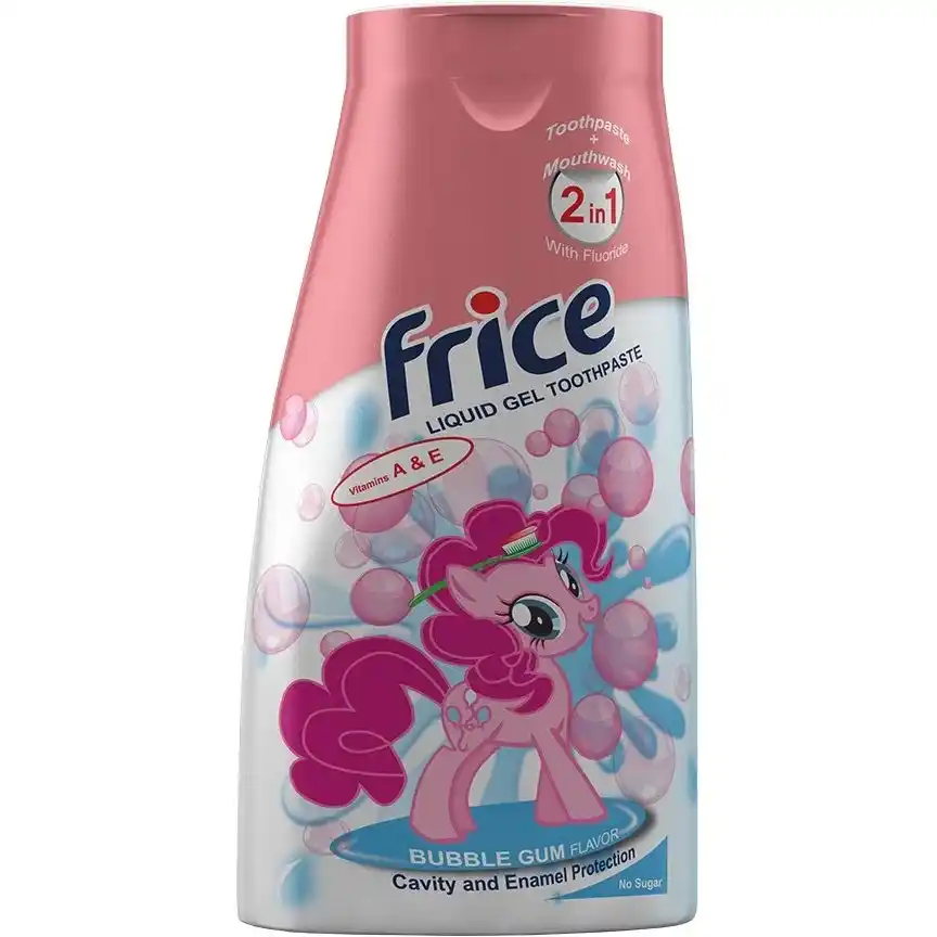 خمیر دندان ژل مایع کودک فریس (Frice) با طعم آدامس بادکنکی، مناسب کودکان بالای ۳ سال است. این محصول علاوه بر محافظت از لثه و مینای دندان، با داشتن فلوراید از پوسیدگی جلوگیری کرده و تجربهای خوشایند از مسواکزدن برای کودک فراهم میکند.
