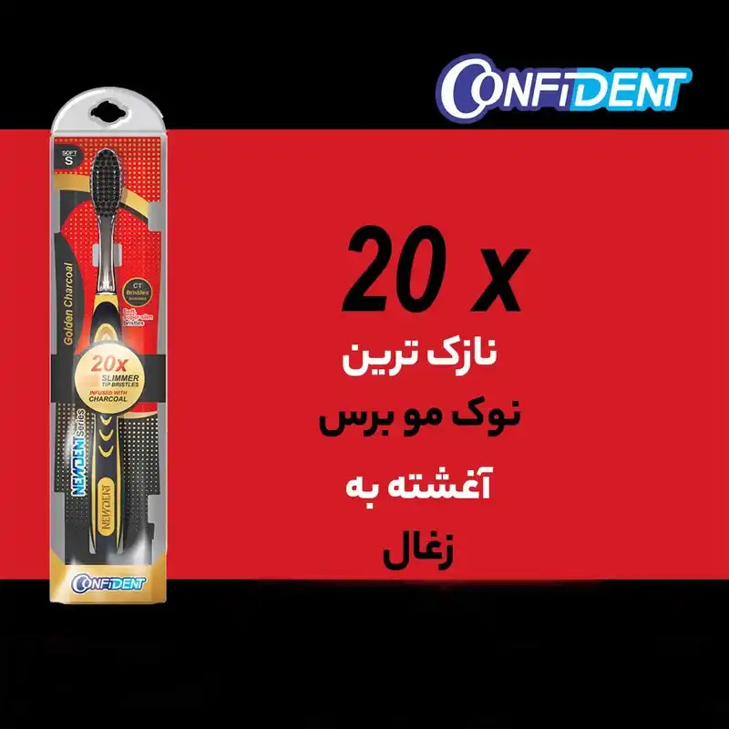 مسواک زغالی کانفیدنت سری Newdent مدل Golden Charcoal برس نرم