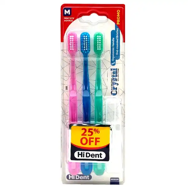 Crystal HiDent Triple Toothbrush with Medium Bristle