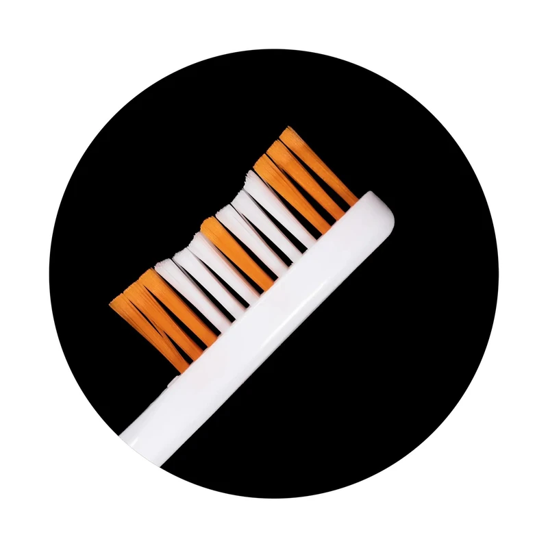 - الیاف انتهای گرد شده: انتهای نرم و گرد الیاف از ایجاد خراش روی مینای دندان و آسیب به لثهها جلوگیری میکند. همچنین چون که این مسواک دارای الیاف متوسط است مناسب استفاده روزانه عموم مصرف کنندگان است.