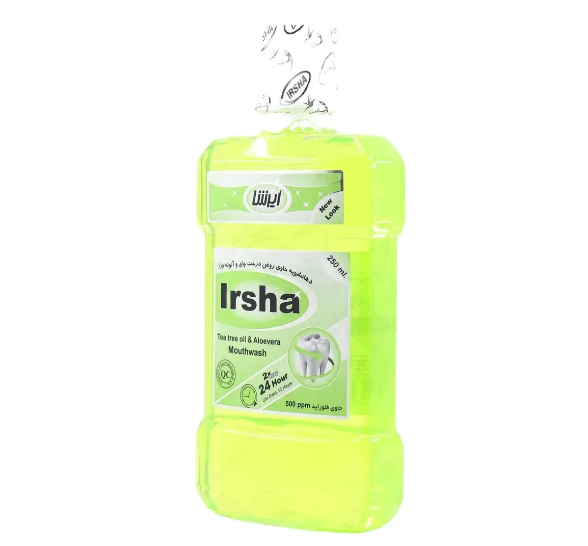 دهانشویه ایرشا با ترکیب روغن درخت چای، آلوئهورا و فلوراید، بدون الکل و با خاصیت ضد پلاک و خوشبوکنندگی، انتخابی مطمئن برای حفظ سلامت دهان و دندان است.
