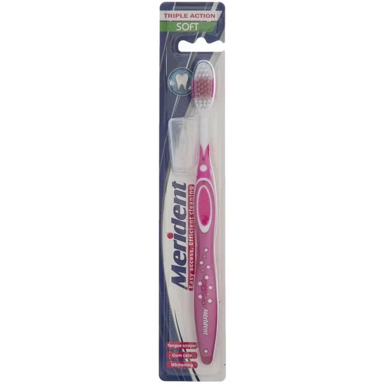 مسواک مریدنت تریپل اکشن با برس نرم و طراحی ویژه، سه عملکرد کلیدی دارد: سفیدکنندگی دندان، مراقبت از لثه و زبانشوی پشت سری. مناسب برای کسانی که به دنبال پاکسازی ملایم و موثر هستند.