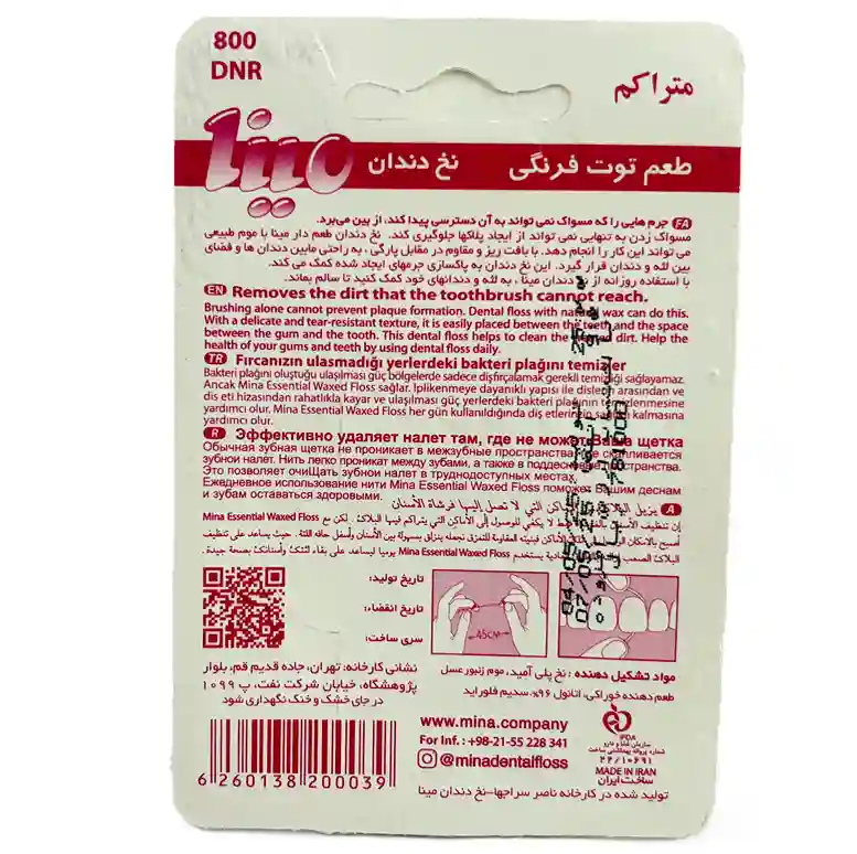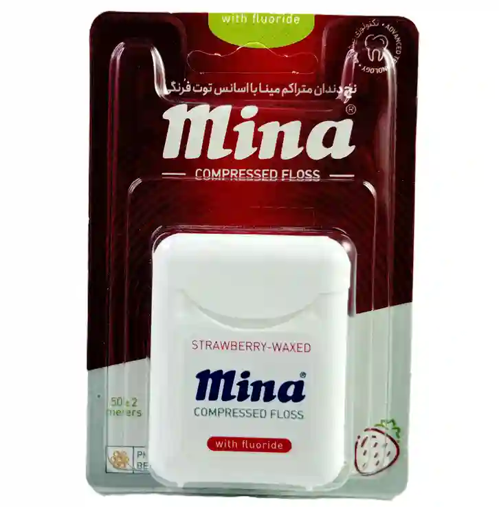 نخ دندان متراکم مینا با طعم توتفرنگی، بافتی مقاوم و پوشش مومی دارد که بهنرمی میان دندانها حرکت میکند و همراه با فلوراید، به پاکسازی دقیق فواصل تنگ و خوشبو ماندن دهان کمک میکند.