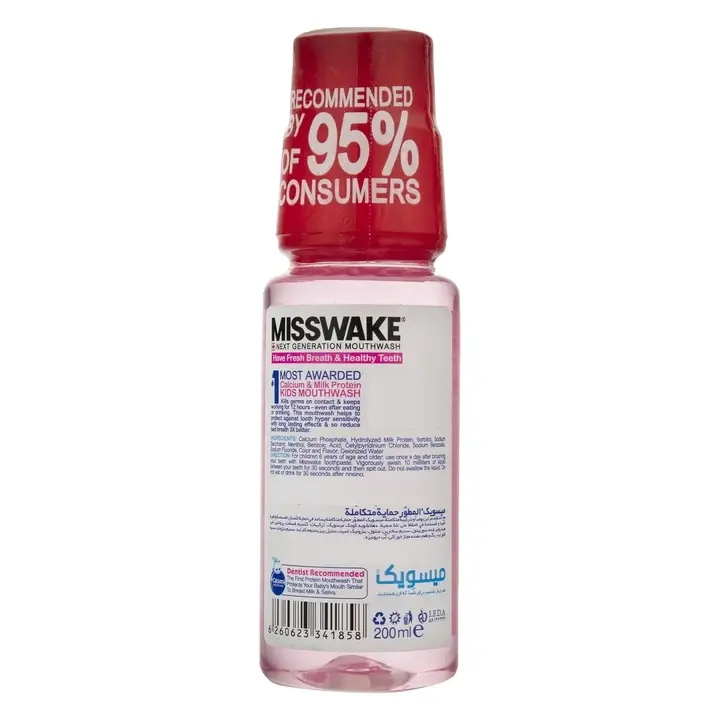 - فاقد الکل و مناسب کودکان: این دهانشویه بدون الکل است و طعمی ملایم دارد که استفاده آن را ایمن و مطلوب میسازد. این محصول از بهترین دهانشویه های مناسب کودکان است که مناسب کودکان بالای 6 سال میباشد.