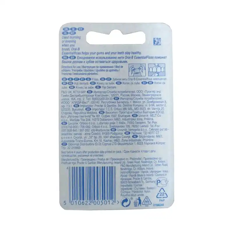 - کیفیت ساخت استاندارد و مورد تایید دندانپزشکان مسواکالا: نخ دندان اورال بی مدل اسنشیال بدون موم مطابق با استانداردهای رایج بهداشت دهان تولید شده و کیفیت آن از سوی متخصصان مسواکالا تأیید شده است تا کاربر با اطمینان بیشتری از آن استفاده کند.