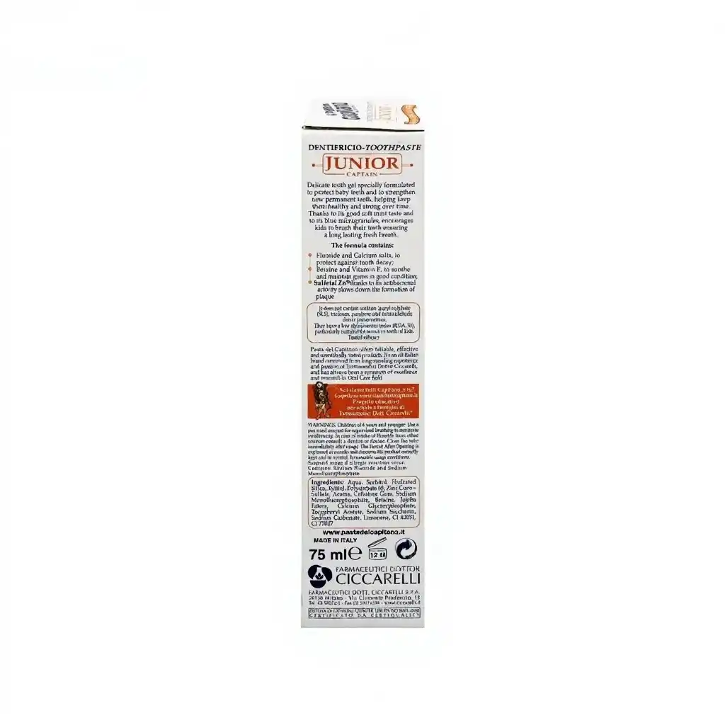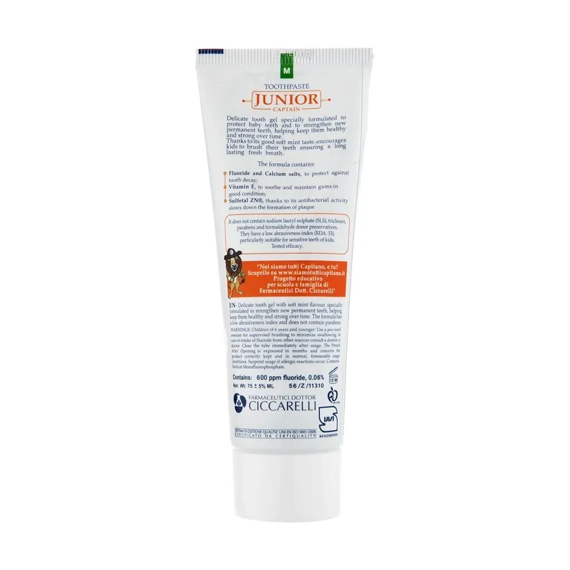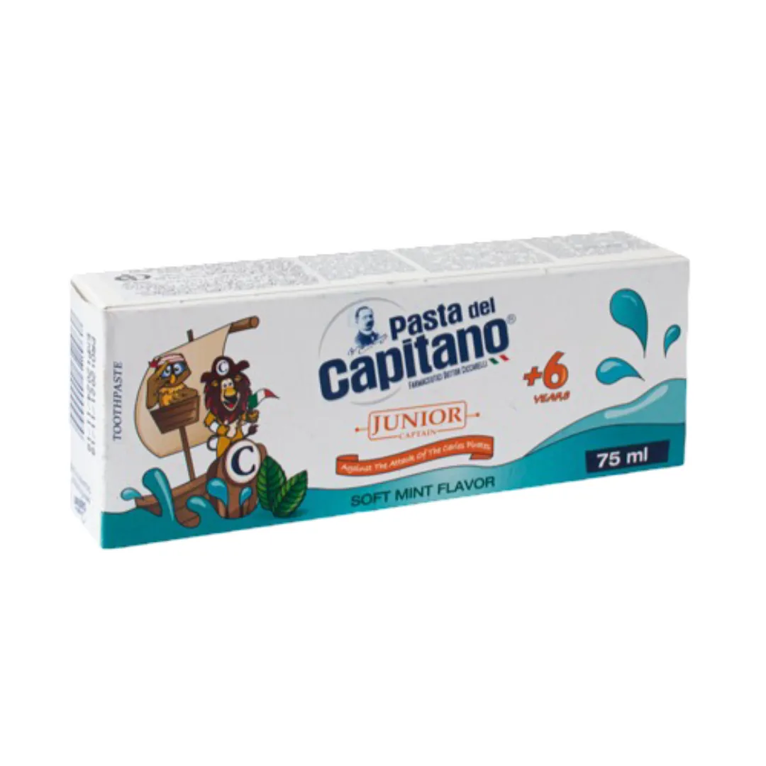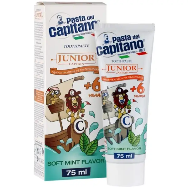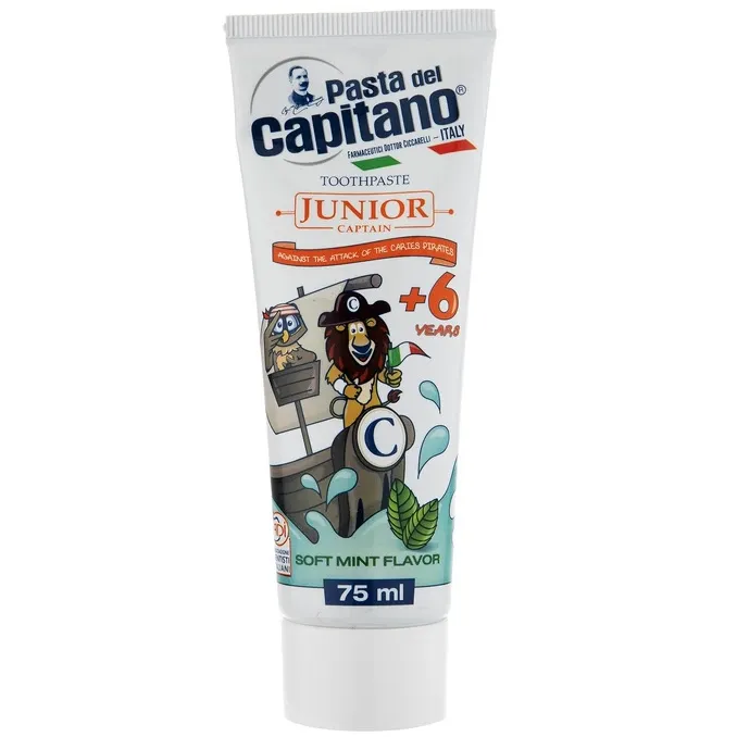 خمیردندان کودک جونیور Junior پاستا دل کاپیتانو بالای ۶ سال با طعم ملایم نعنا، یک خمیردندان کودکان تخصصی با فرمولاسیون پیشرفته ایتالیایی است که به طور ویژه برای نیازهای دوره حساس رشد دندانی کودکان بالای شش سال طراحی شده است.