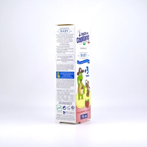 خمیردندان کودک (Baby) پاستا دل کاپیتانو (+۳ سال)، پاسخی هوشمندانه به نیاز والدین برای محصولی ایمن و در عین حال جذاب برای کودکان است. طعم لذیذ توت فرنگی و میکروسفرهای رنگی آن، مسواک زدن را به یک تجربه شاد تبدیل می کند، در حالی که والدین میتوانند از کیفیت علمی آن اطمینان کامل داشته باشند. این فرمولاسیون با شاخص سایش بسیار پایین و فاقد SLS، از مینای حساس دندان های شیری و لثه های لطیف کودک محافظت می کند. همزمان، میزان فلوراید کاهش یافته و ایمن (600 ppm) به همراه عصاره گل پنیرک، محافظتی مؤثر در برابر پوسیگی و تضمینی برای سلامت لثه ها فراهم می آورد. این محصول انتخابی مناسب برای ایجاد یک عادت بهداشتی مثبت در کودک شما، با خیالی آسوده است.