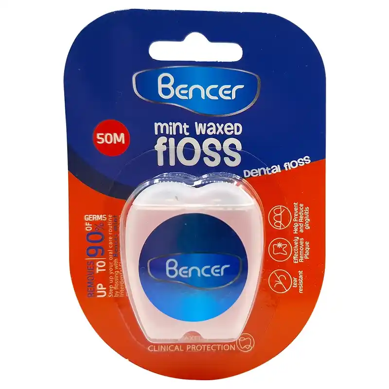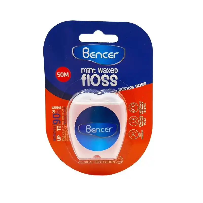 نخ دندان سفید نعنایی بنسر ۵۰ متر | پاکسازی حرفهای بین دندانها
