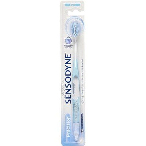 مسواک سنسوداین Precision با سری کوچک و الیاف نرم طراحی شده تا بتواند نواحی دقیق و حساس دهان را بدون ایجاد فشار یا تحریک تمیز کند. این مدل برای افرادی مناسب است که دندانها و لثههای حساس دارند و به دنبال یک مسواک سبک، ملایم و کاربردی برای استفاده روزانه هستند.
