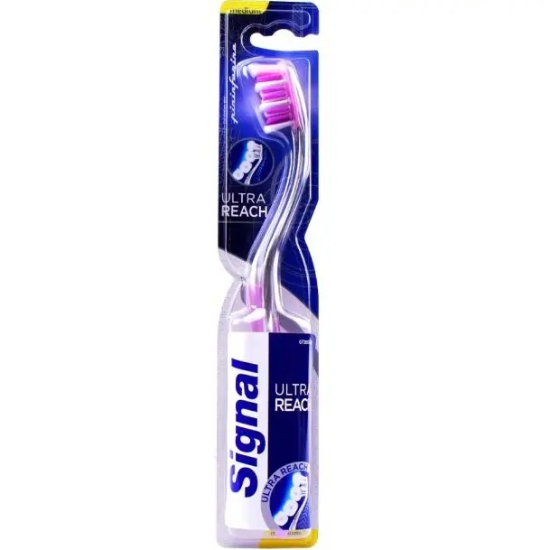 مسواک سیگنال مدل الترا ریچ با برس نرم، به طور ویژه به منظور پاک کنندگی عمیق دندان ها و پاک کردن فضاهای بین دندانی تولید شده و مناسب استفاده روزانه تمامی اعضای ختنواده به منظور حفظ بهداشت و سلامت دهان و دندان است.