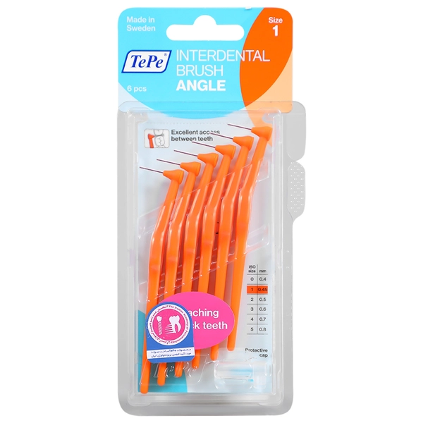 مسواک بیندندانی زاویهدار TePe سایز 1 با طراحی ارگونومیک و برس زاویهدار، امکان دسترسی آسان به فواصل بین دندانی و نواحی عقب دهان را فراهم میکند. این محصول برای تمیز کردن دقیق بین دندانها، اطراف ایمپلنت و بریج مناسب بوده و به کاهش پلاک و حفظ سلامت لثه کمک میکند. هر بسته شامل ۶ برس باکیفیت ساخت سوئد است.