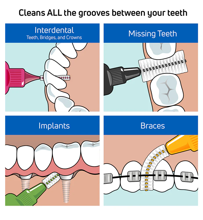 • طراحی برای فواصل بسیار باریک (Ultra-Fine Wire): این برس بین دندانی دارای سیم مرکزی با قطر ۰.۴ میلی‌ متر است که آن را برای فضاهای بسیار تنگ که حتی نخ دندان در پاکسازی کامل آن‌ها ناتوان است، مناسب می‌ سازد. سیم مرکزی دارای روکش پلاستیکی است تا از هرگونه آسیب فیزیکی به مینای دندان یا ایجاد جریان گالوانیک در دهان جلوگیری شود.